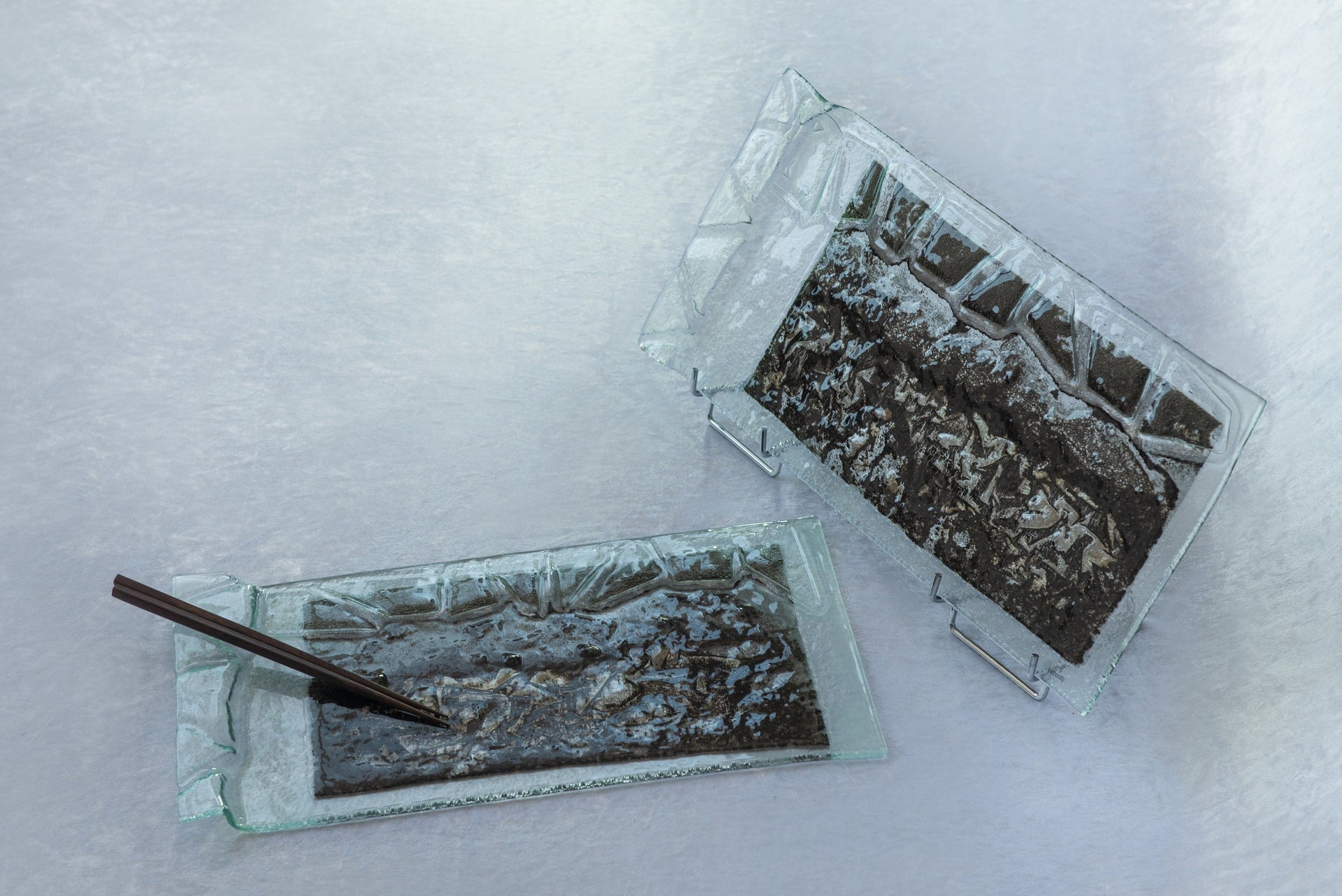 Set Of 2 Sushi/Cheese Tokyo Platters With Metallic Grey Accents - 18 1/8"x6 1/8" (46cm.x15,5cm.)