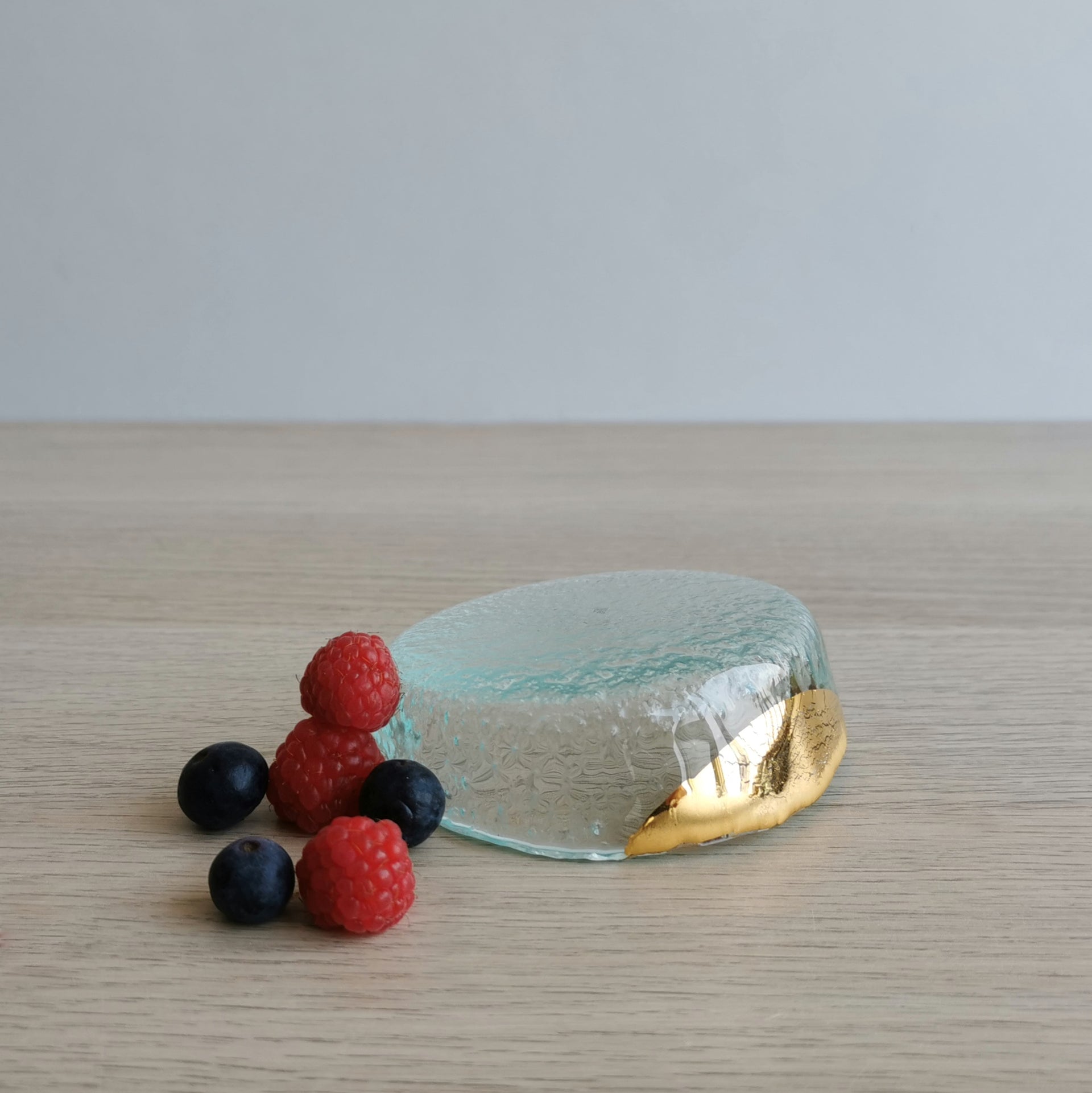 Manhattan Minimalist Transparent&Gold Glass Charger Plate. Small Transparent&Gold Glass Plate - 3 9/16" (9cm.)