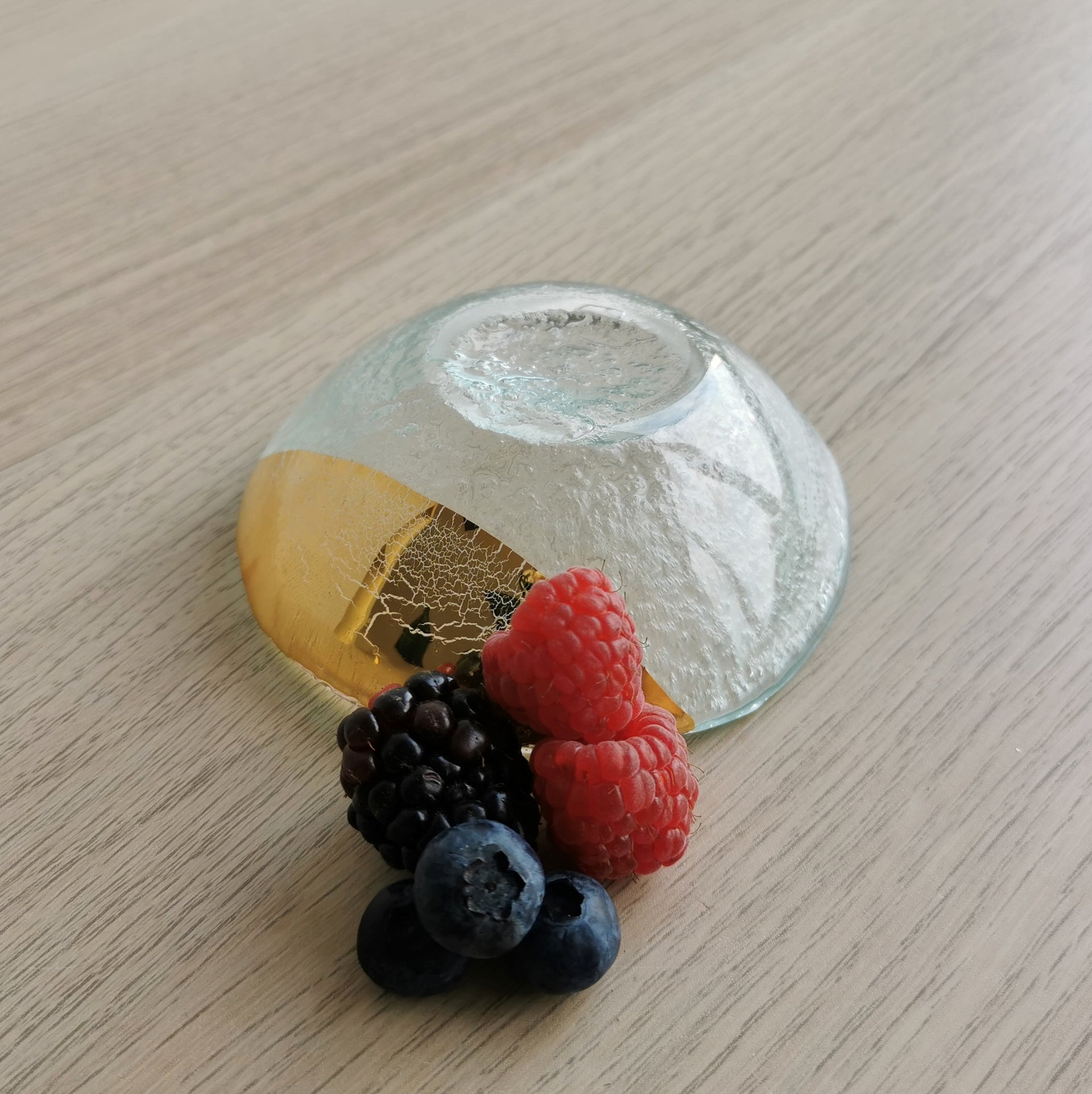 All bottoms of our tableware are branded with our logo. This guarantees that you are getting an original product with excellent quality, 100% handmade in our City Glass Studio.