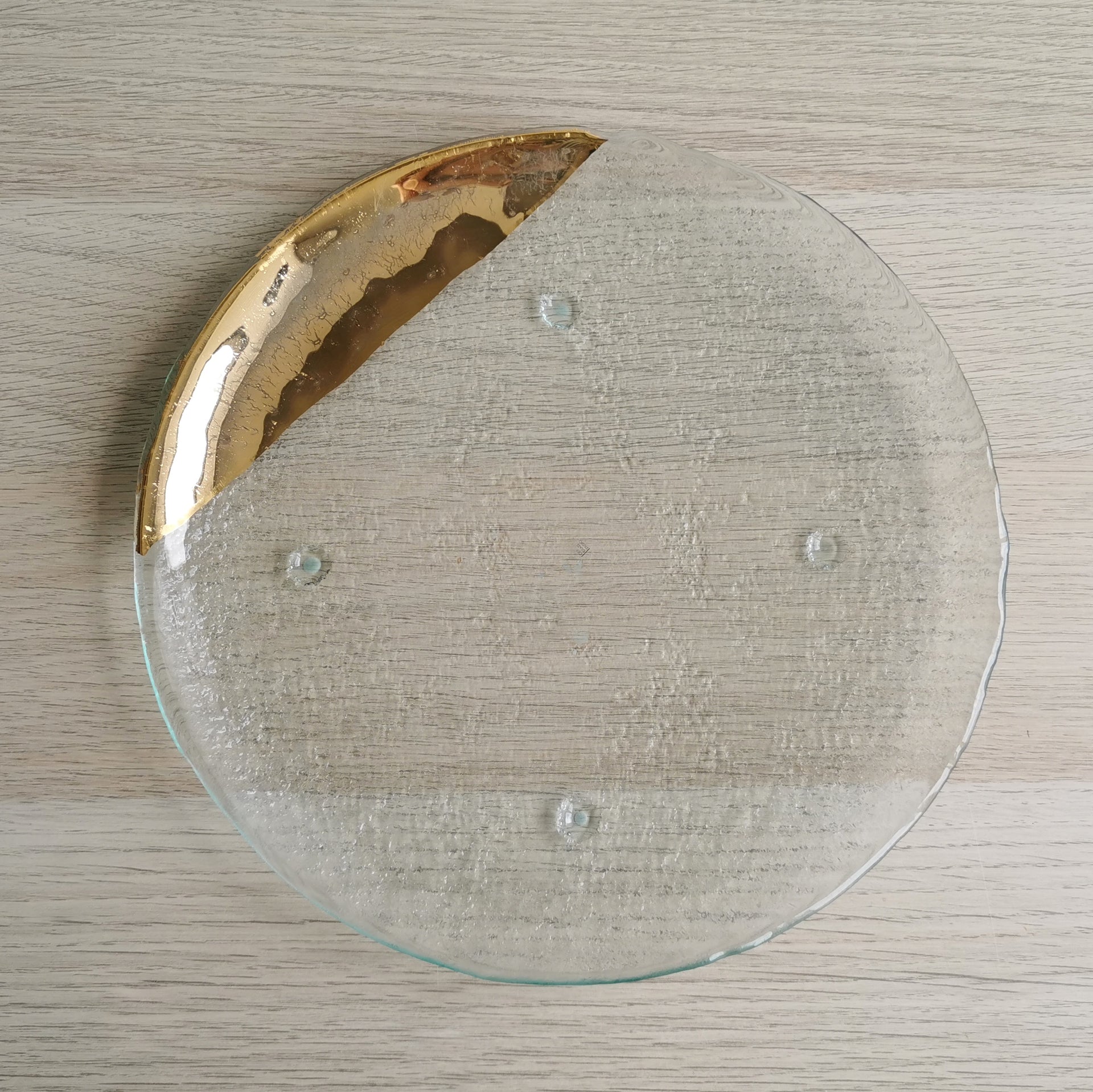 Merry Minimalist Transparent&Gold Glass Main Course Plate. Transparent&Gold Glass Plate - 10 5/8" (27cm.)