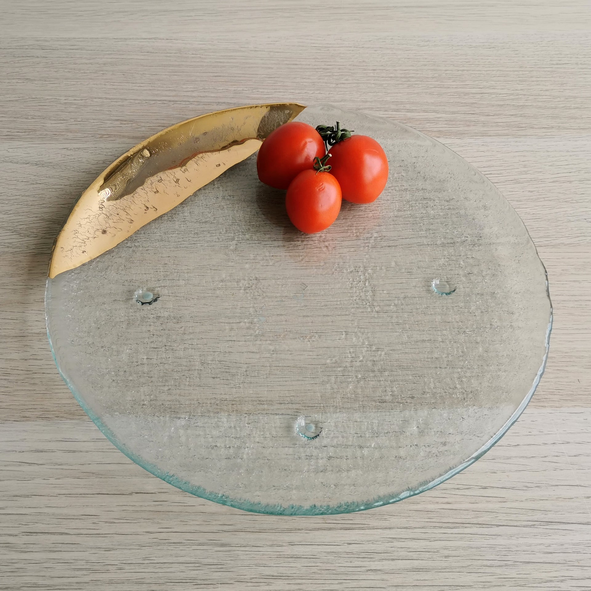 This expressive minimalist handmade fused glass main course plate will state your perfect elegant taste at the table. Meals served in this plate look like a piece of art. The fine creative look of it follows the latest trends in dinnerware design. It is a result of lots of years of experience in working with glass.
