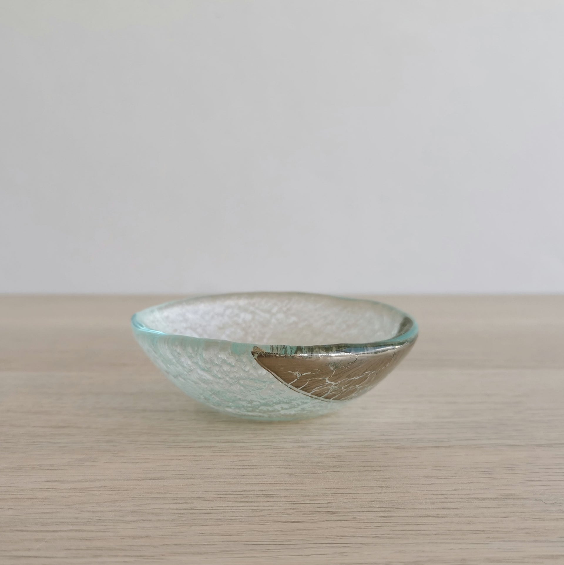 Merry Minimalist Transparent&Platinum Glass Bowl. Small Transparent&Platinum Glass Soy Sauce Bowl - 3 1/8" (8cm.)