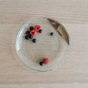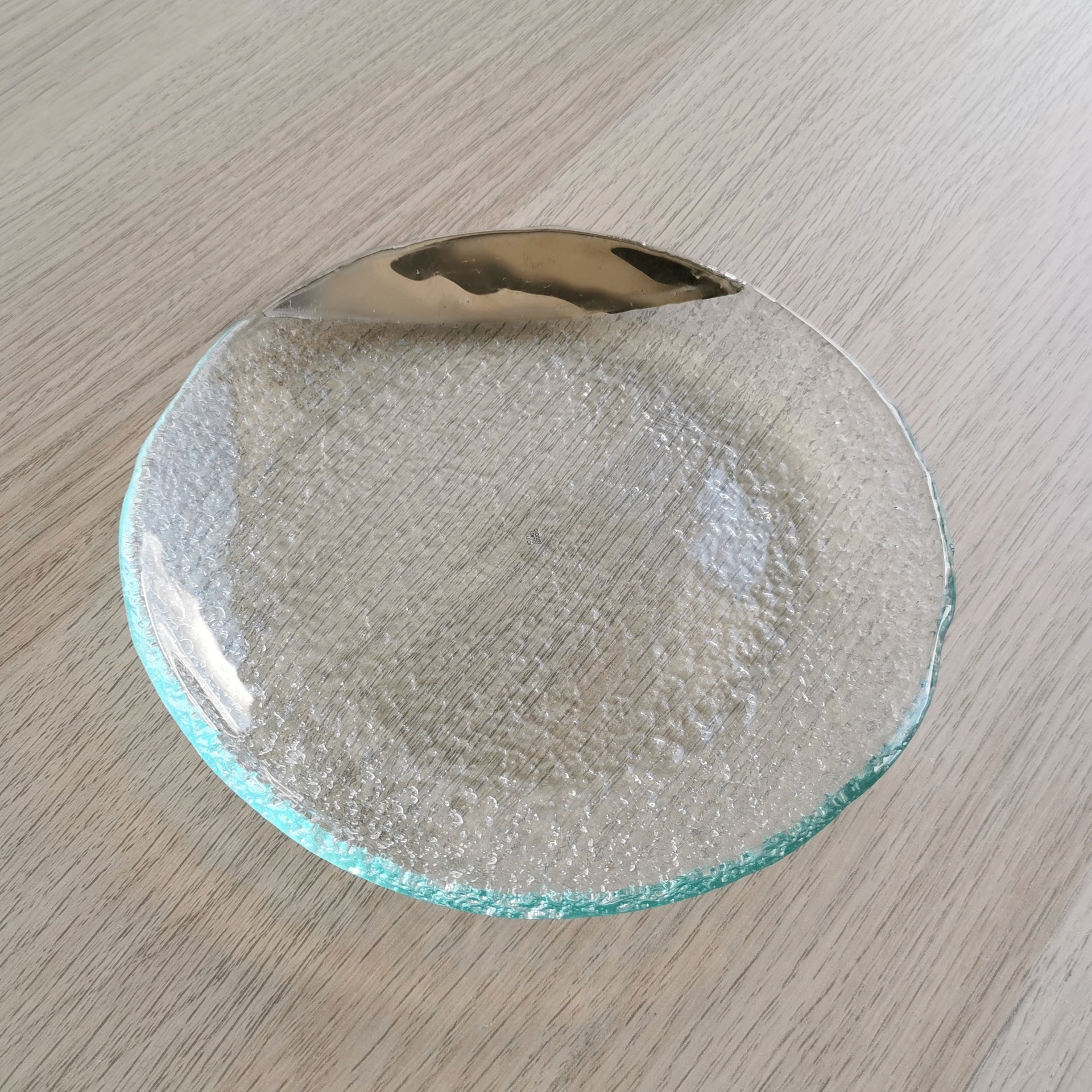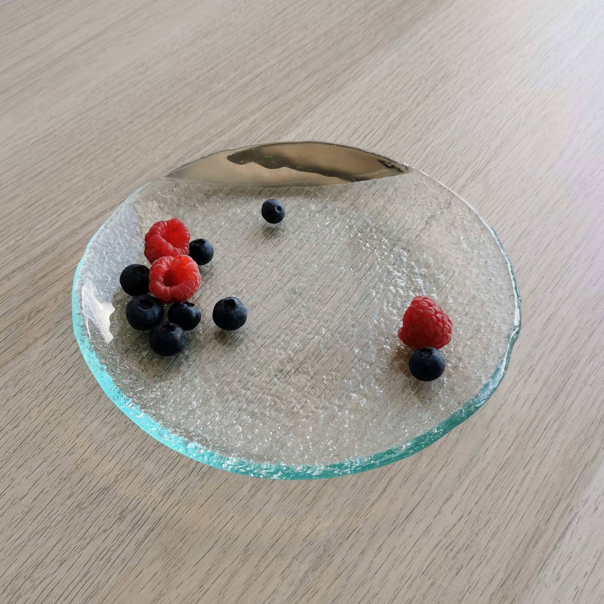 Merry Minimalist Transparent&Platinum Glass Charger Plate. Small Transparent&Platinum Glass Plate - 6 11/16" (17cm.)