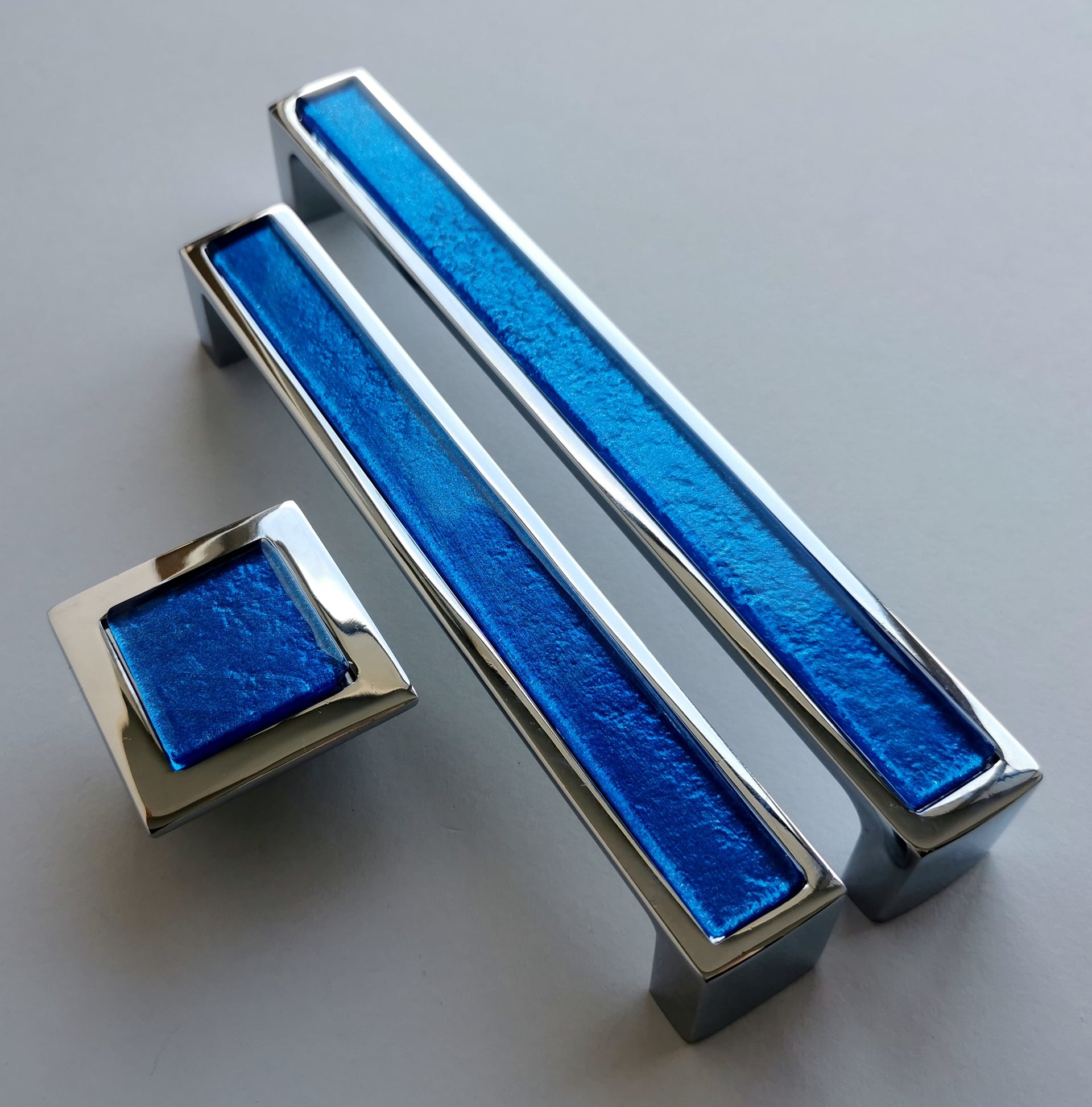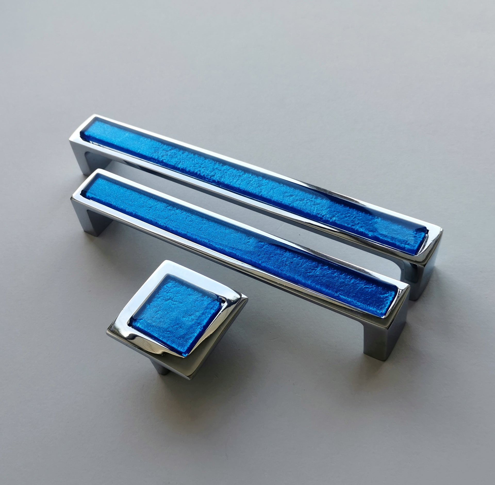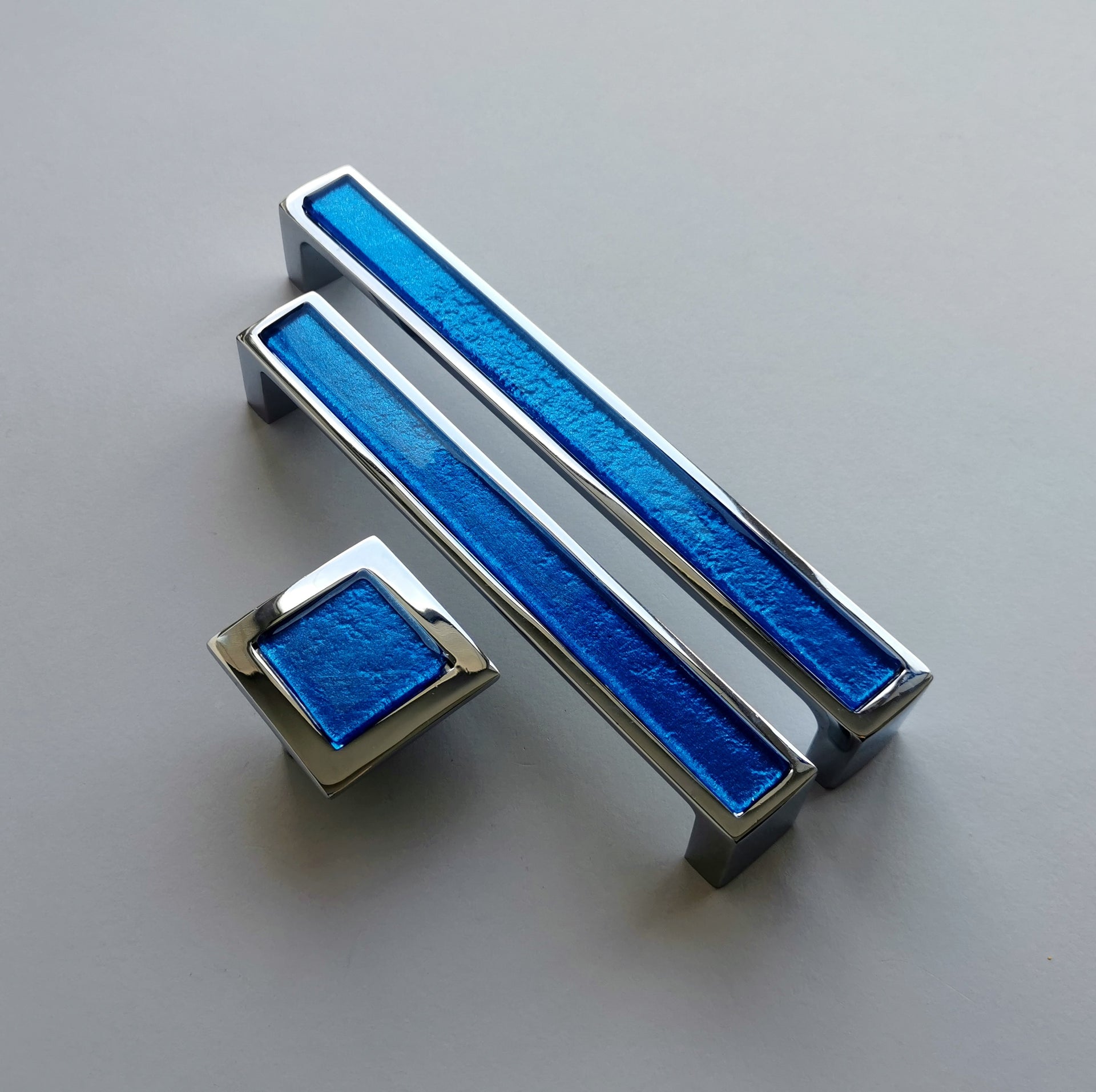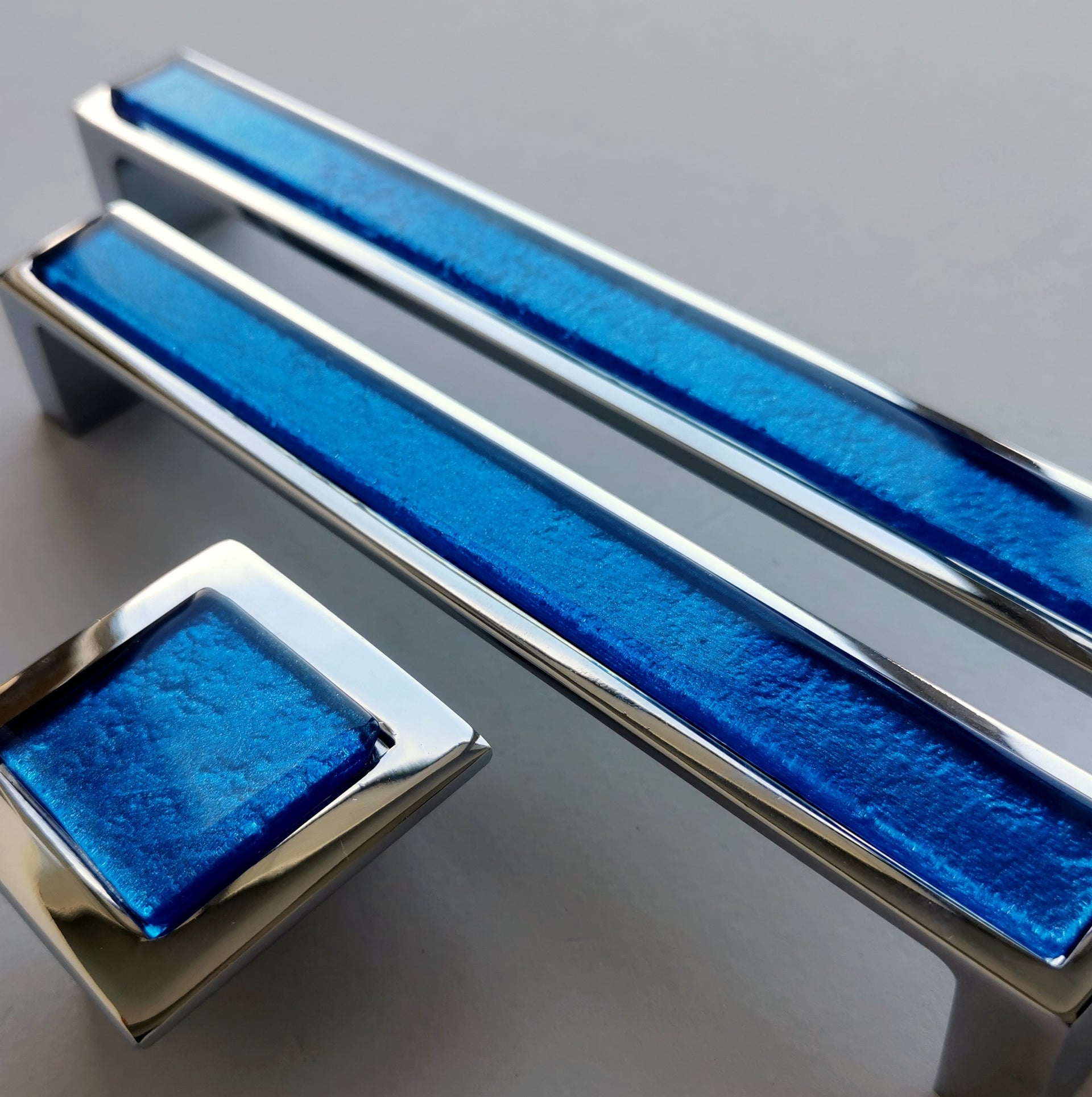 Modern Cobalt Blue Glass Pop-up Pull/Knob. Pop-up Glass Handles - 0021
