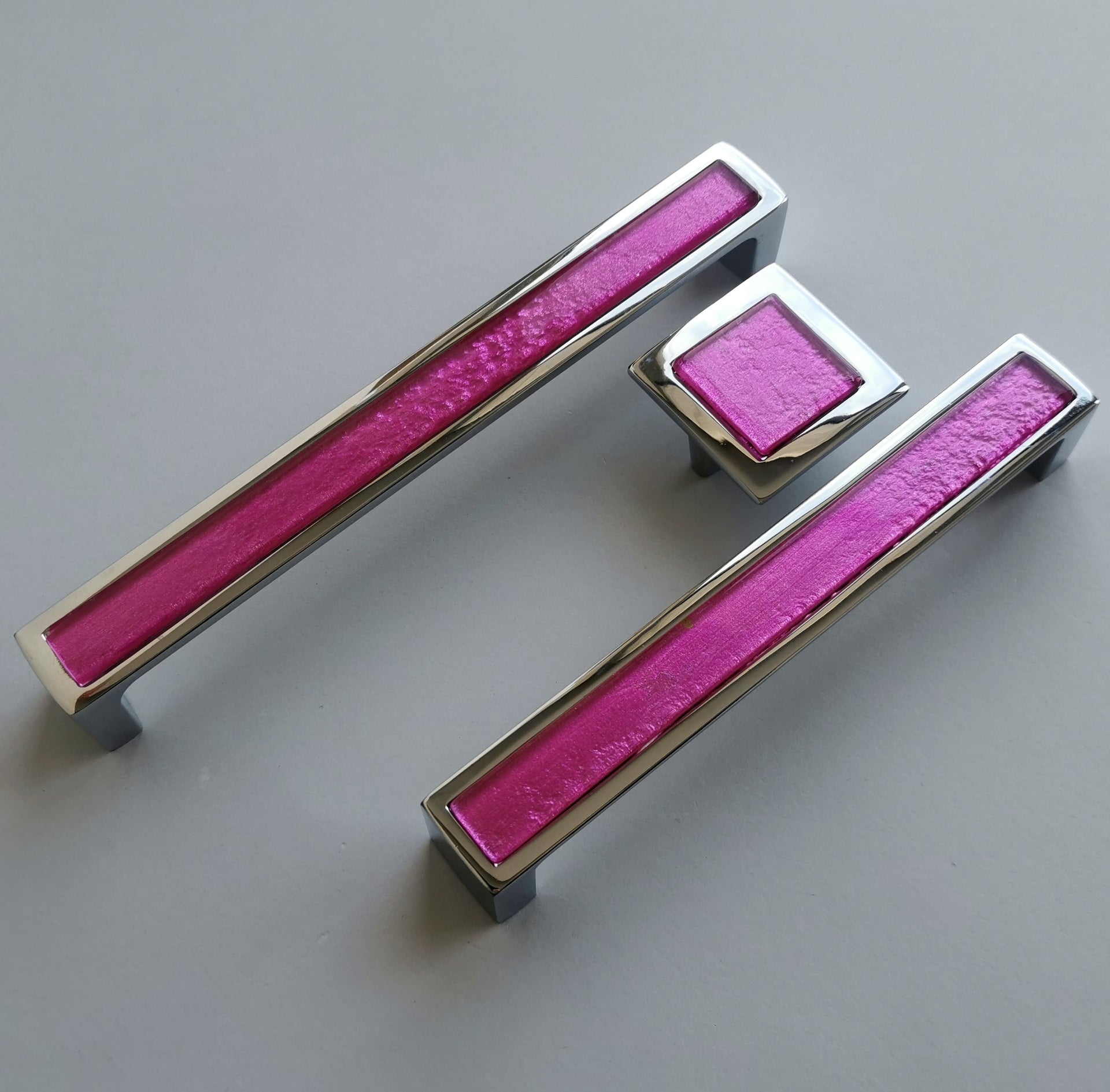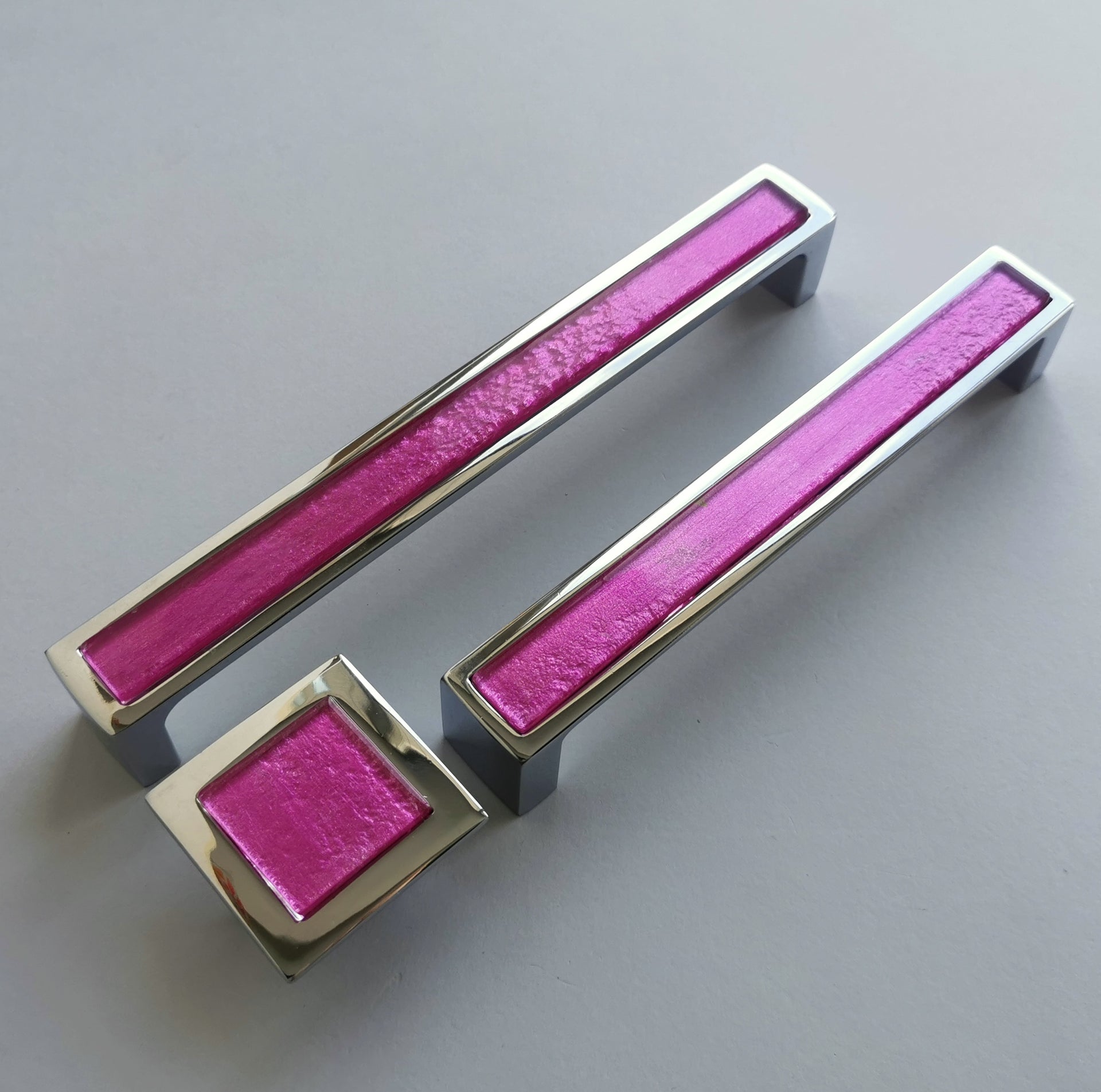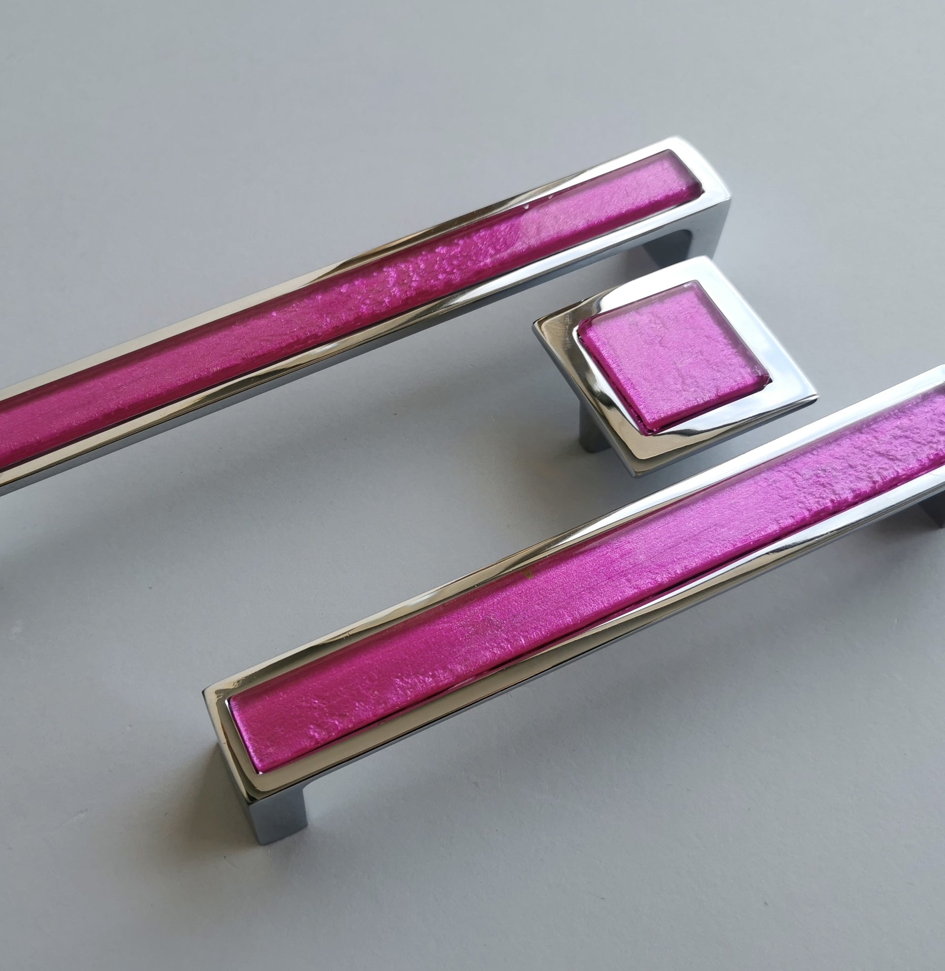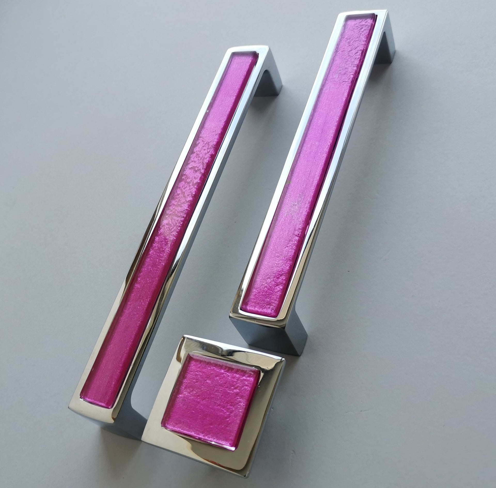 Modern Fuchsia Pink Glass Pop-up Pull/Knob. Pop-up Glass Handles - 0022