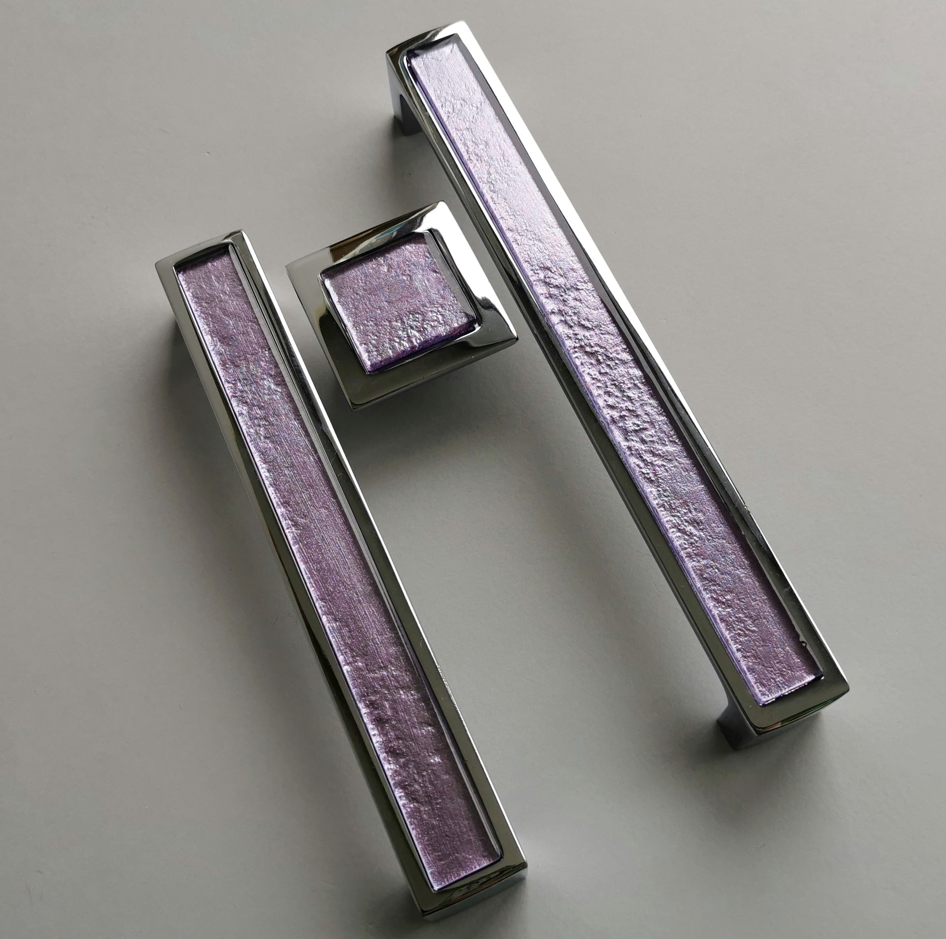 Modern Lilac Purple Fused Glass Pop-up Pull/Knob. Pop-up Glass Handles - 0033