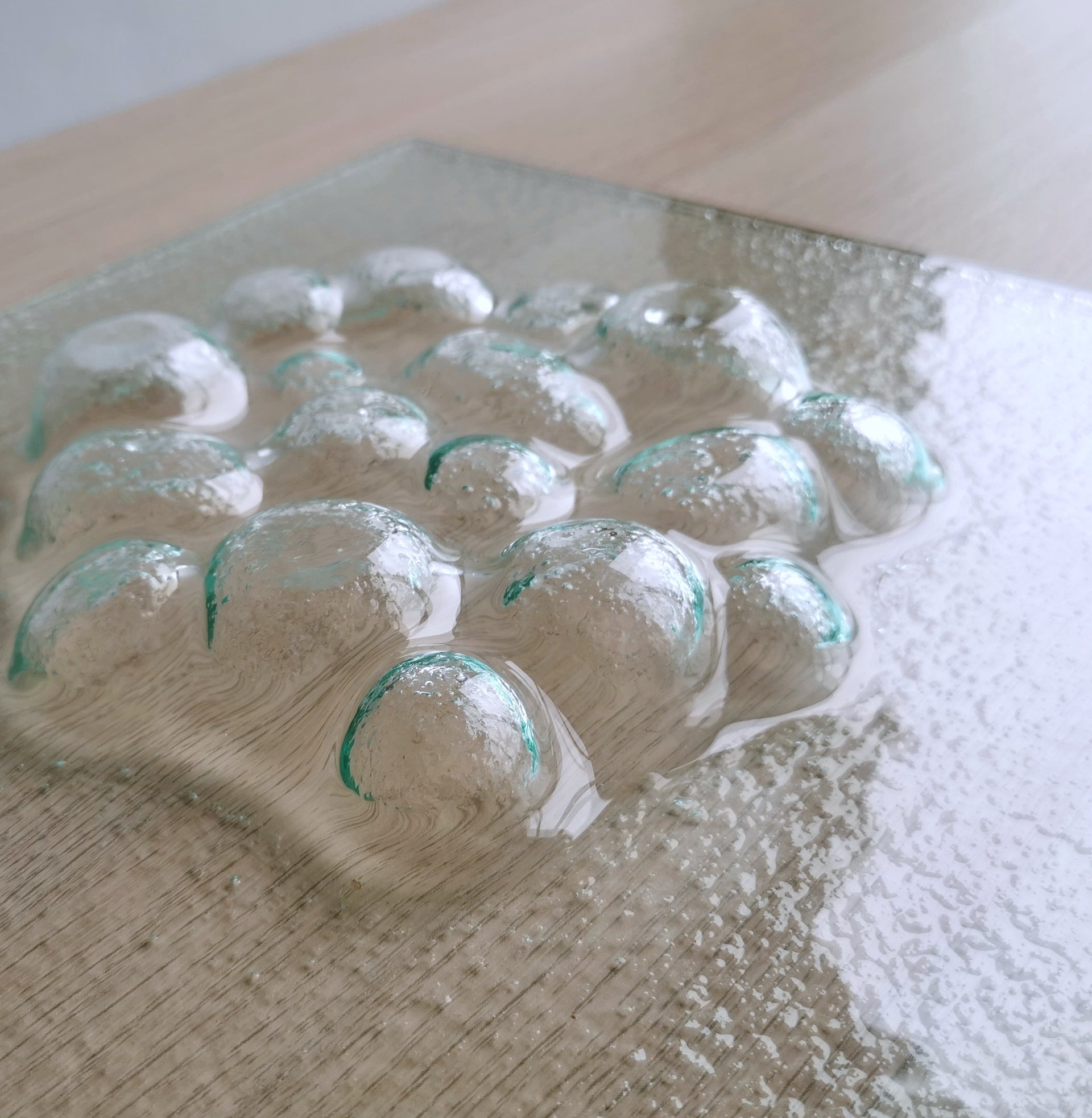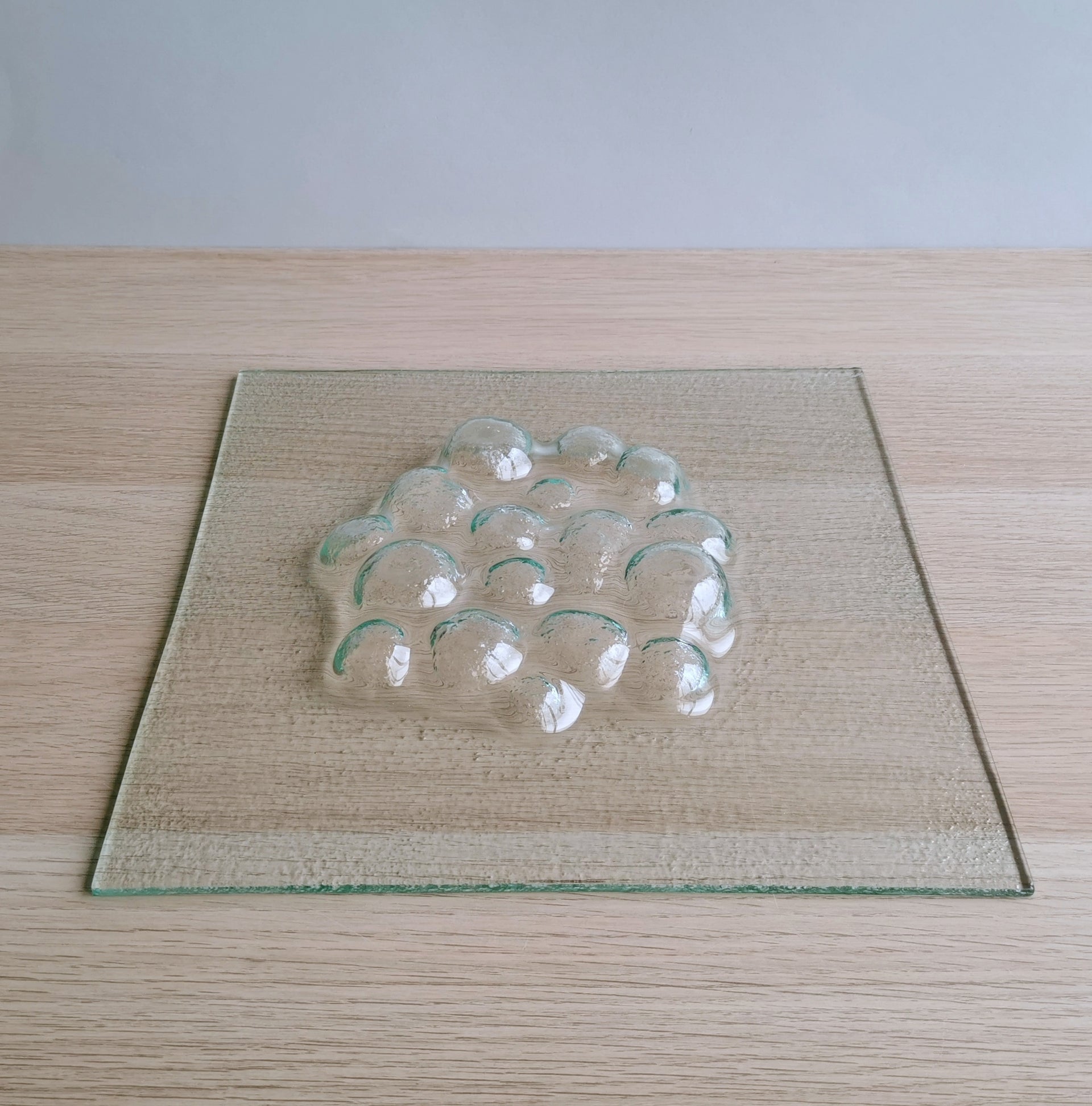 Minimalist Transparent Fused Glass Rocks Platter. Artistic Clear Glass Platter - 12"x12" (30,5cm.x30,5cm.)