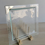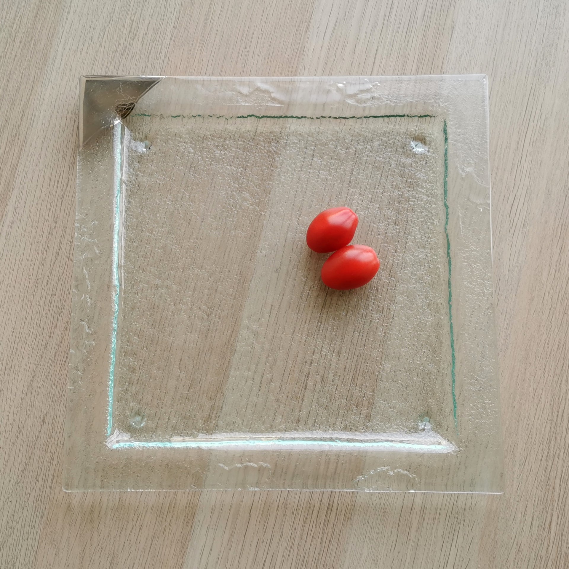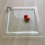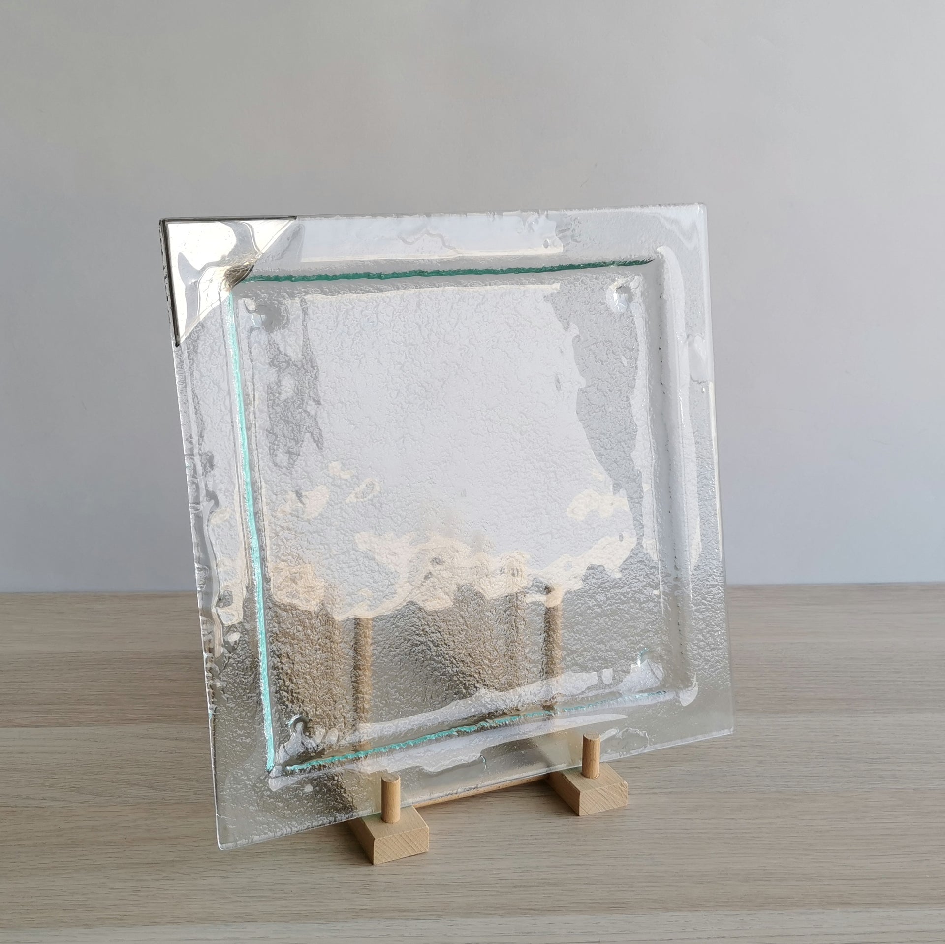 New York Minimalist Transparent&Platinum Glass Platter. Transparent&Platinum Glass Platter - 12"x12" (30,5cm.x30,5cm.)
