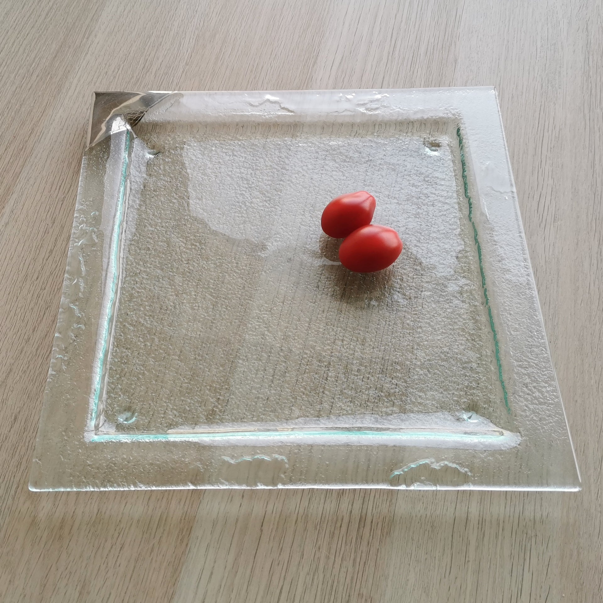 This expressive minimalist handmade fused glass platter will state your perfect elegant taste at the table. Meals served in this plate look like a piece of art. The fine creative look of it follows the latest trends in dinnerware design. It is a result of lots of years of experience in working with glass.