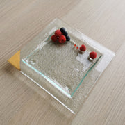 This expressive minimalist handmade fused glass main course plate will state your perfect elegant taste at the table. Meals served in this plate look like a piece of art. The fine creative look of it follows the latest trends in dinnerware design. It is a result of lots of years of experience in working with glass.