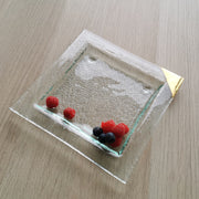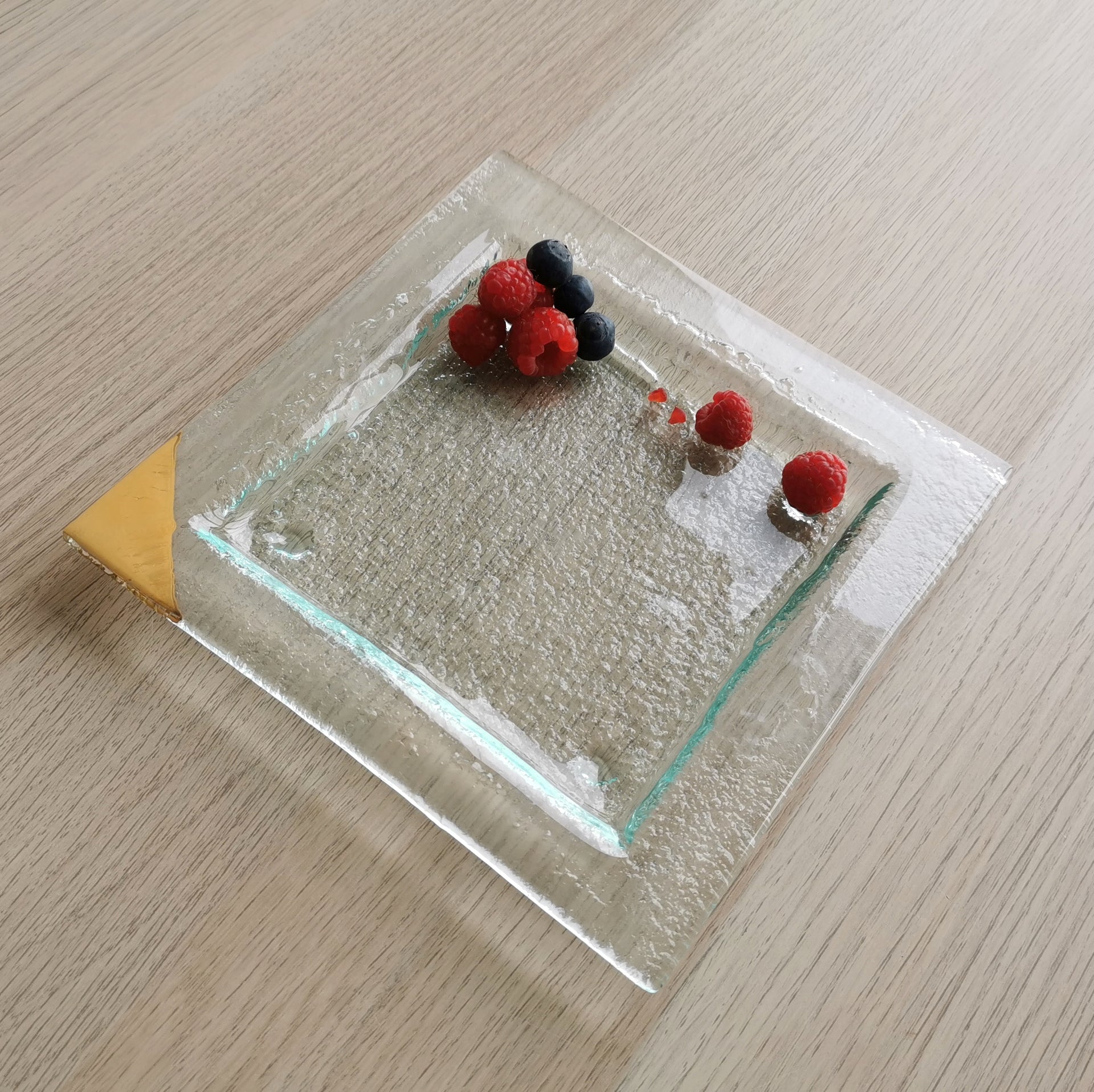 New York Minimalist Transparent&Gold Glass Charger Plate. Transparent&Gold Glass Plate - 7 11/16"x7 11/16" (19,5cm.x19,5cm.)