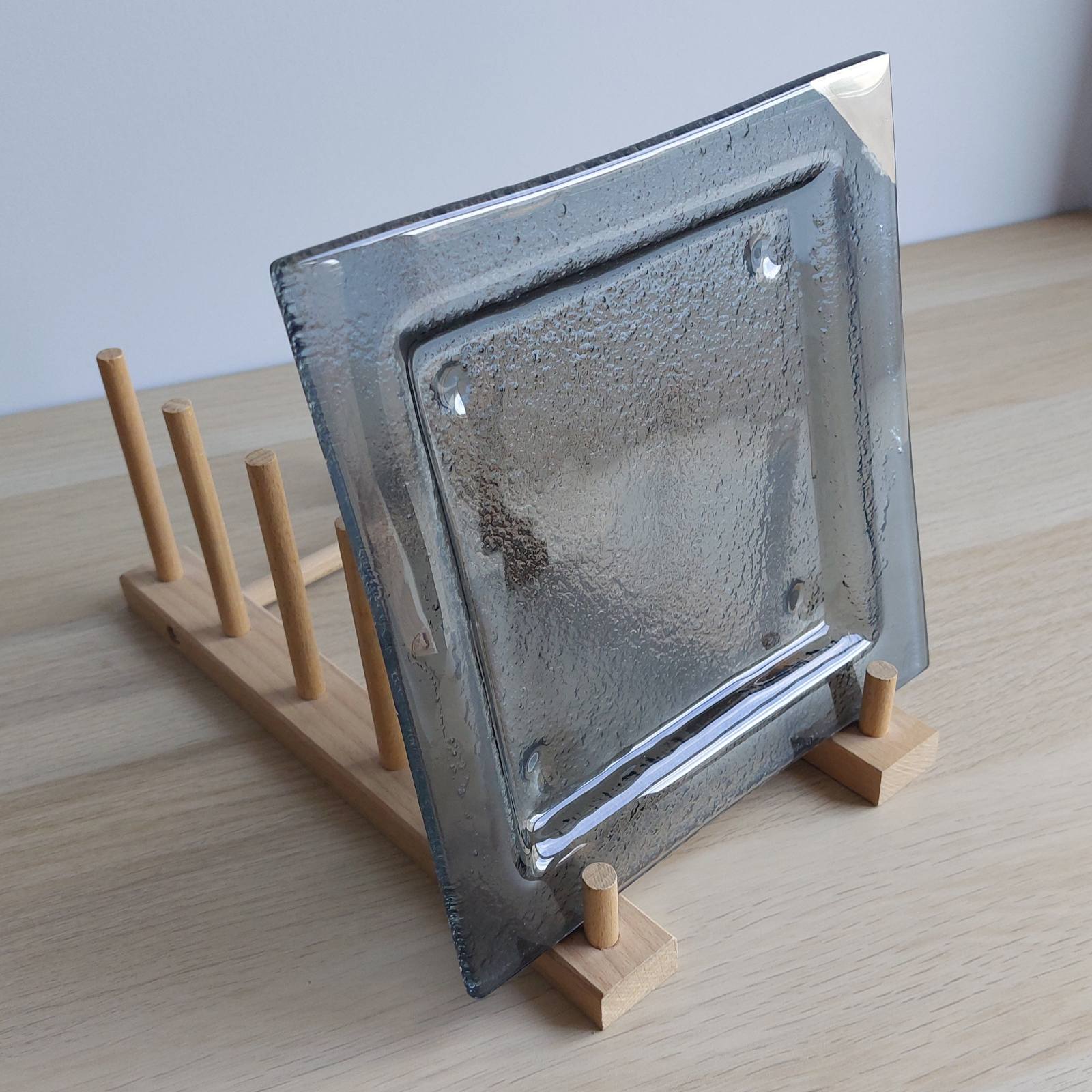 This expressive minimalist handmade fused glass main course plate will state your perfect elegant taste at the table. Meals served in this plate look like a piece of art. The fine creative look of it follows the latest trends in dinnerware design. It is a result of lots of years of experience in working with glass.