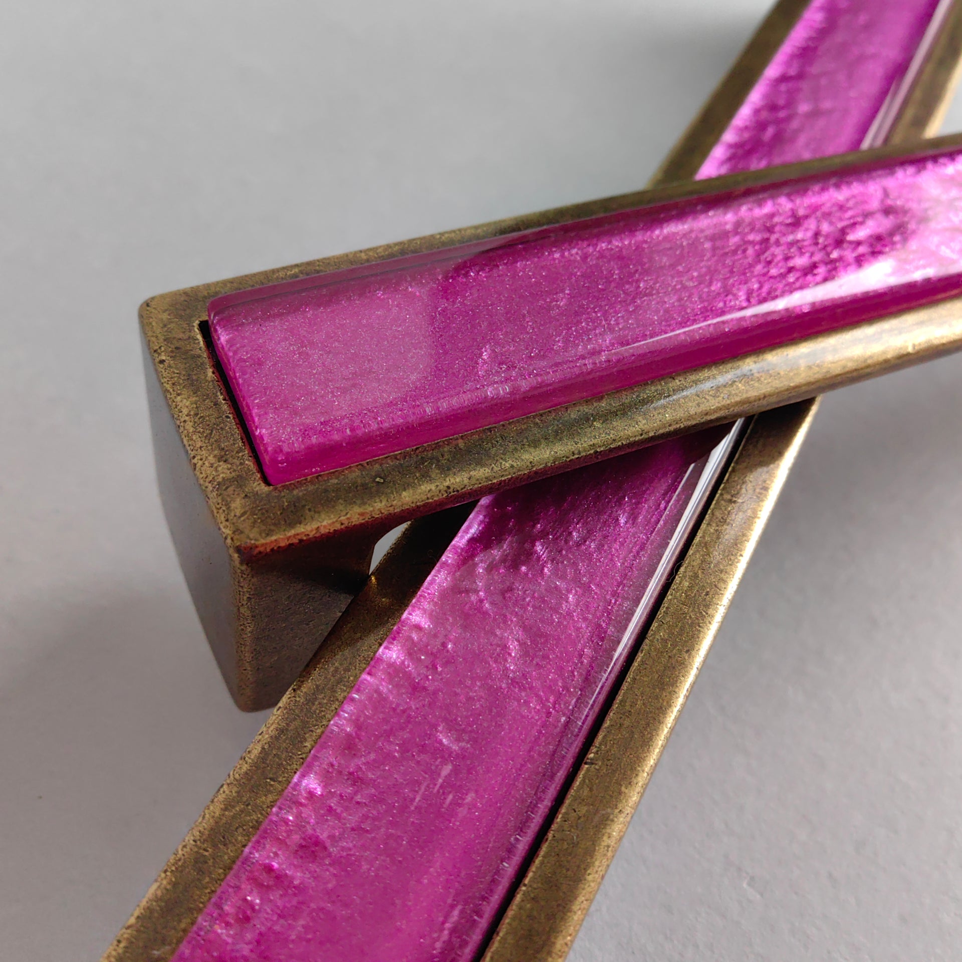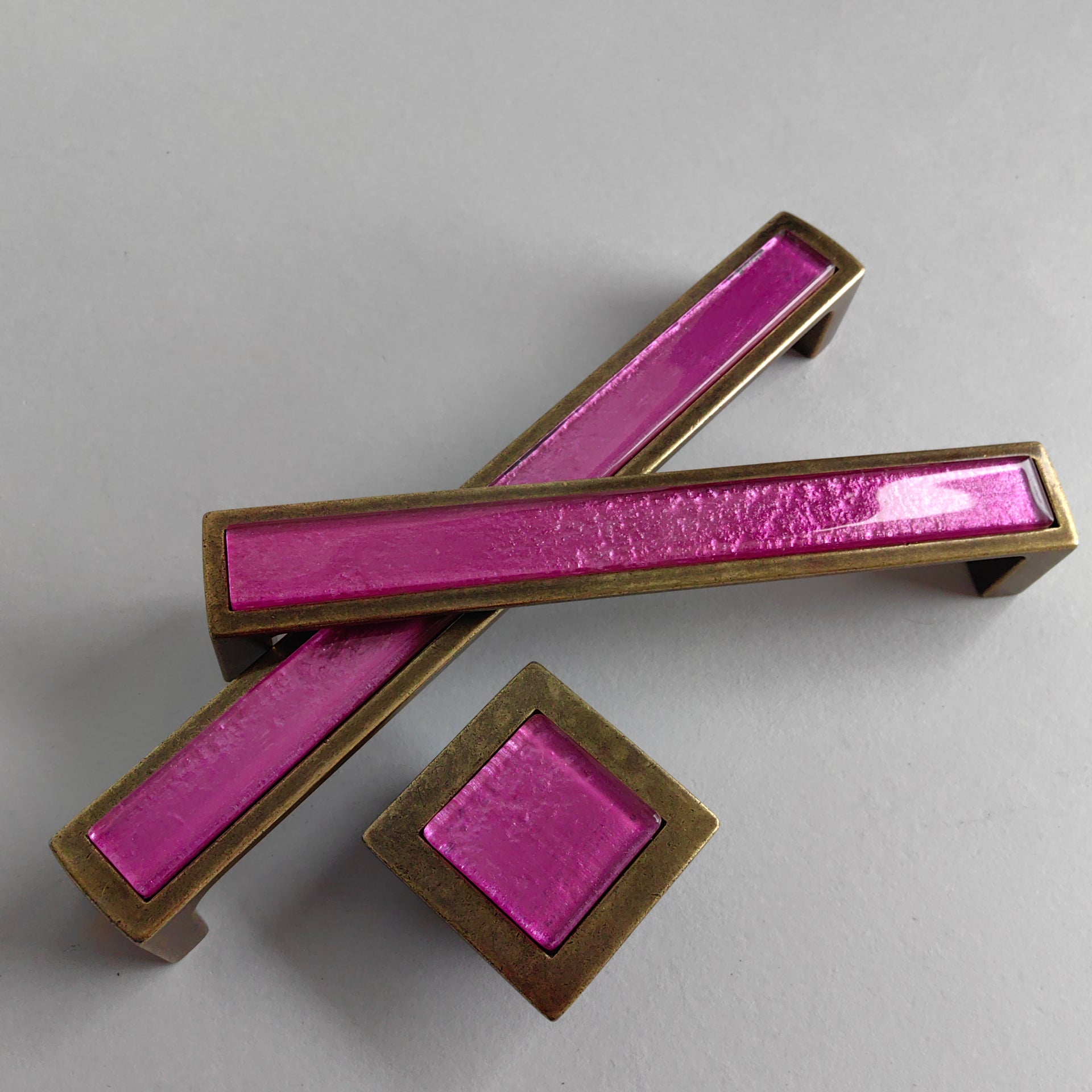 Pop-up Bright Pink Glass Pop-up Pull/Knob. Antique Brass Metal Finish. Pop-up Glass Handles - 0022