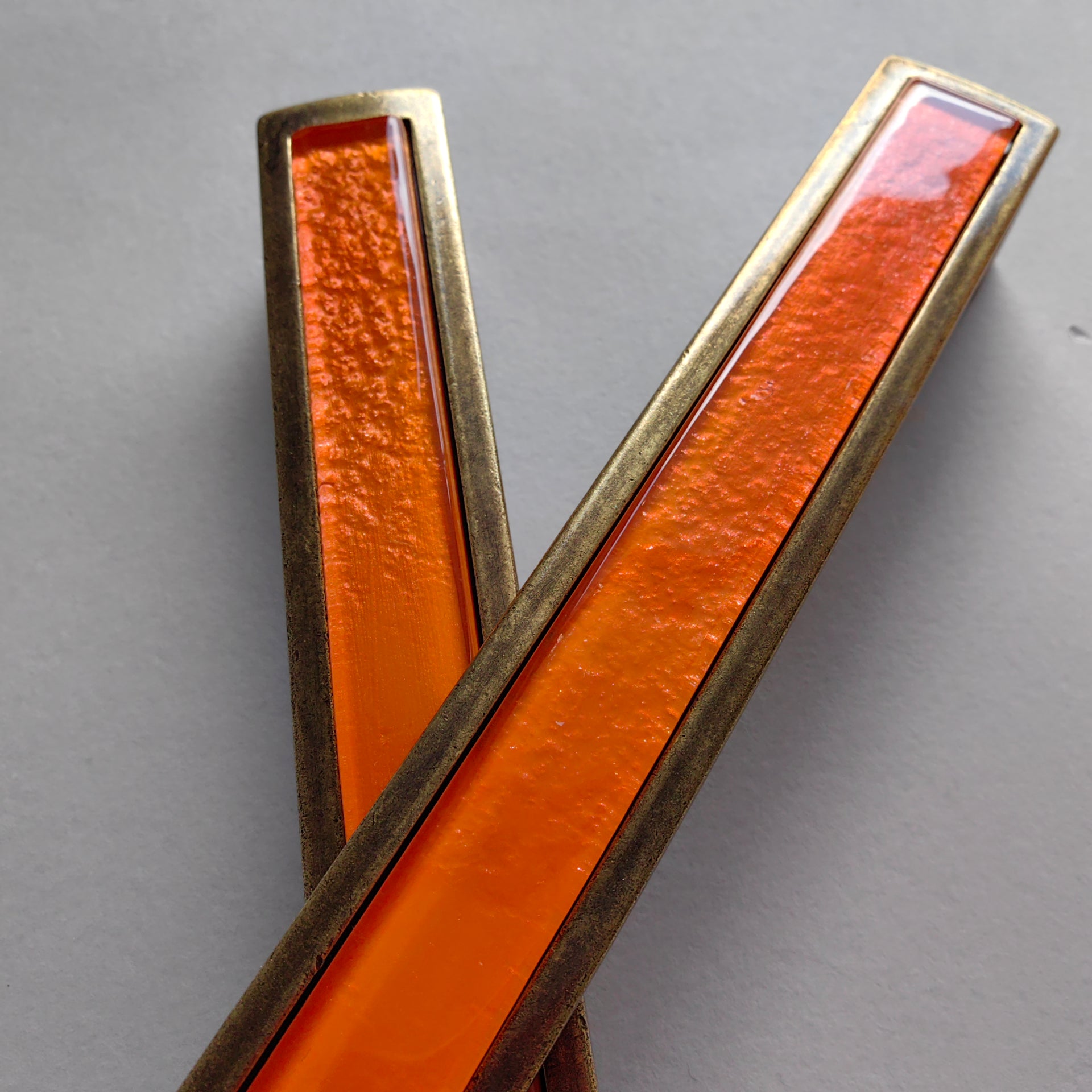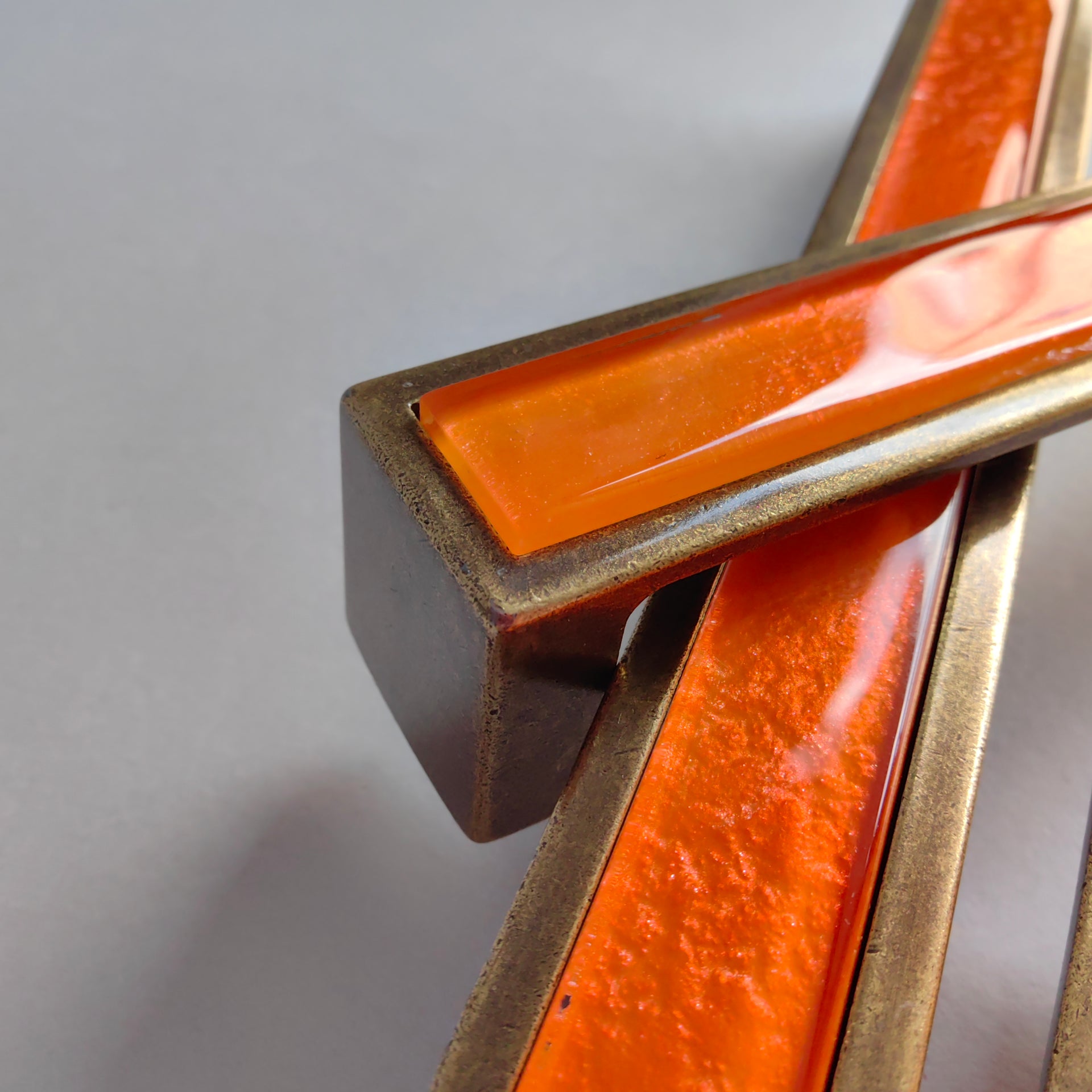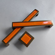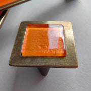 Pop-up Pumpkin Orange Glass Pop-up Pull/Knob. Antique Brass Metal Finish. Pop-up Glass Handles - 0057